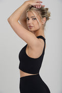 Den strukturerede top kombinerer stil, komfort og funktion – og giver et skulptureret look, der fremhæver kroppens naturlige linjer.