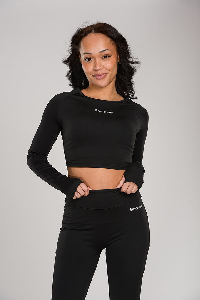 Smooth Thin Cropped Long Sleeve Set Black