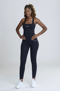 Toppen är utrustad med en inbyggd sport-bh, vilket ger extra support och gör att du kan röra dig fritt utan extra lager. I färgen Midnight Black får du en tidlös, elegant och kraftfull look som fungerar överallt – både i gymmet, på yogan eller som en del av din vardagsstil. Setet är designat för att sitta helt perfekt, med en lätt och luftig konstruktion som andas och följer dina rörelser genom hela träningspasset.