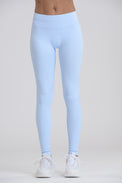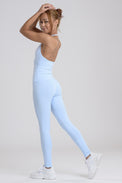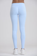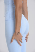 Dessa ljusblåa tights är tillverkade i ett supermjukt sömlöst material som formar sig efter kroppen och ger en otroligt följsam känsla. Den smickrande scrunch-effekten och contouring-detaljerna lyfter dina former på ett naturligt och elegant sätt – perfekt både på gymmet och till vardags.