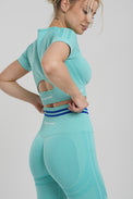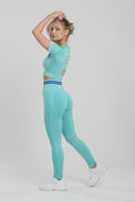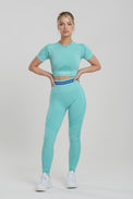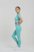 Shape Contouring Set i Coral Green är en av våra populärstare t-shirt och tights set i en härlig korall turkos nyans. Tightsen har hög midja för bästa passform med scrunch som framhäver dina former på ett snyggt och naturligt sätt. Tightsen är också är tillverkade i mjukt, stretchigt och följsamt tyg. Det strategiska konturerna i t-shirten skapar en smickrande passform som lyfter fram din naturliga form, samtidigt som det mjuka, stretchiga materialet rör sig med dig – oavsett aktivitet.