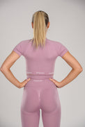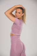 Yhteensopiva saumaton setti vaaleanpunaisena, jossa on erityinen painotus muotoiluun. Suunniteltu antamaan täydellisesti muotoiltu istuvuus ja maksimaalinen mukavuus. Valmistettu korkeateknologisesta saumattomasta materiaalista, jossa on strateginen kompressio ja nelisuuntainen jousto, joka mukautuu kehoon ja korostaa luonnollisia linjojasi.