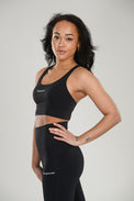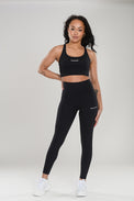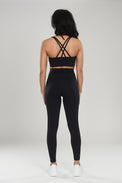 Yhteensopiva setti ultrakevyestä materiaalista, jossa on vartaloa muotoileva skulptaava vaikutus, joka mukautuu kehon muotoihin imartelevan ja mukavan istuvuuden takaamiseksi. Topissa on tyylikkäät ristikkäiset hihnat takana, jotka antavat sekä elegantin ilmeen että optimaalisen tuen. Tightsit on suunniteltu sculpt-toiminnolla, joka kohottaa ja korostaa luonnollisia kurvejasi, samalla kun hikiratkaiseva materiaali pitää sinut kuivana ja raikkaana koko päivän ajan.