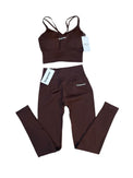 Tyylikäs ja muotoileva setti, joka on suunniteltu sekä mukavuutta että suorituskykyä varten. Topissa on elegantit ristikkäiset nauhat takana, jotka antavat ainutlaatuisen ja tyylikkään ilmeen samalla kun ne tarjoavat optimaalisen tuen. Legginseissä on imarteleva scrunch-efekti, joka korostaa muotojasi parhaalla mahdollisella tavalla. Saumaton materiaali mukautuu kehoon ja tarjoaa joustavan, tukevan istuvuuden, joka sopii sekä treeniin että arkeen.