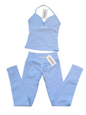 Et luksuriøst sett i supermykt og smidig materiale som former kroppen på en naturlig måte. Den trendy halterneck-toppen gir en flatterende silhuett, og tightsen sitter komfortabelt og fremhever kurvene dine. Fantastisk behagelig å ha på seg – både til trening og hverdagsbruk.