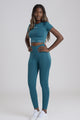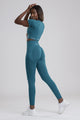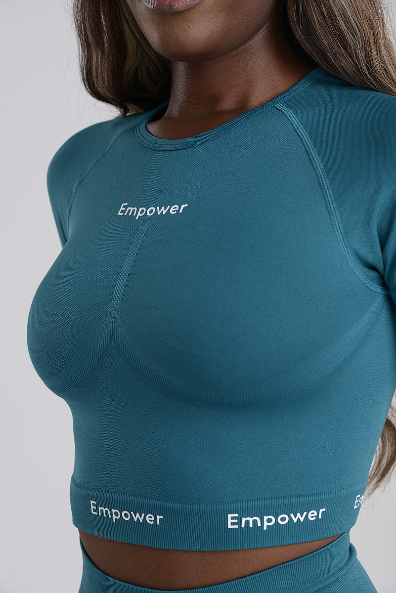 Matchande seamless set i Dark Turquoise med extra fokus på contouring. Designat för att ge en perfekt skulpterad passform och med maximal komfort. Tillverkat i högteknologiskt seamless-material med strategisk kompression och four-way stretch som formar sig efter kroppen och framhäver dina naturliga linjer.