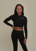 Långärmad seamless topp med öppen rygg med vacker snörning på baksidan. Tillverkad av mjukt och stretchigt material som följer kroppens rörelser. Ryggen pryds av snygg cutout-detalj och toppen har en figurnära passform som framhäver dina former. Perfekt för träning på gymmet eller när som helst, denna topp är både stilfull och funktionell.